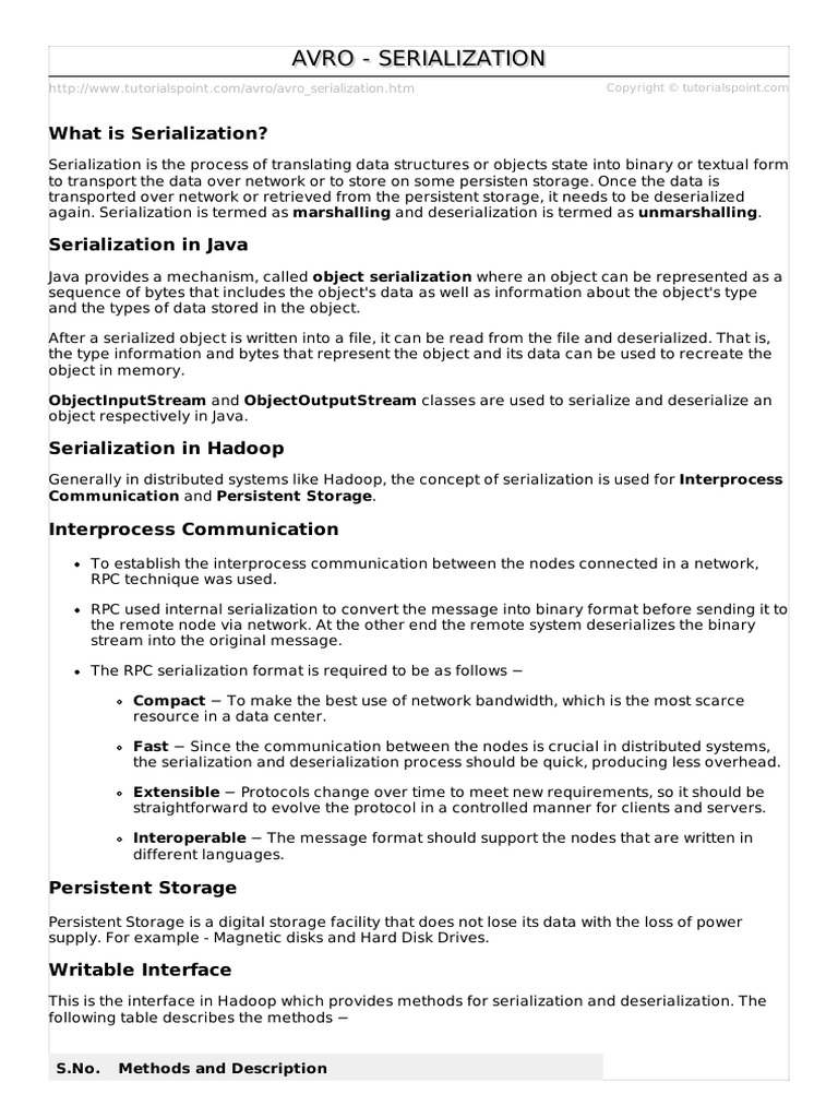 Apache avro data serialization framework | PDF
