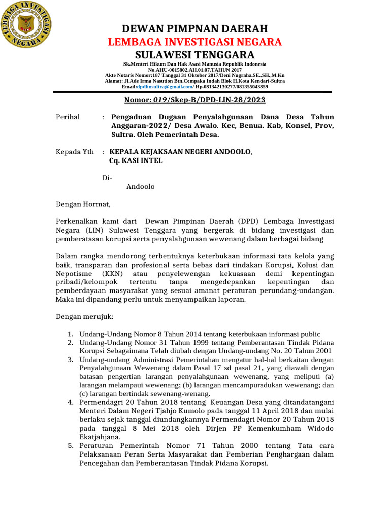 Laporan Dana Desa Awalo Konsel | PDF