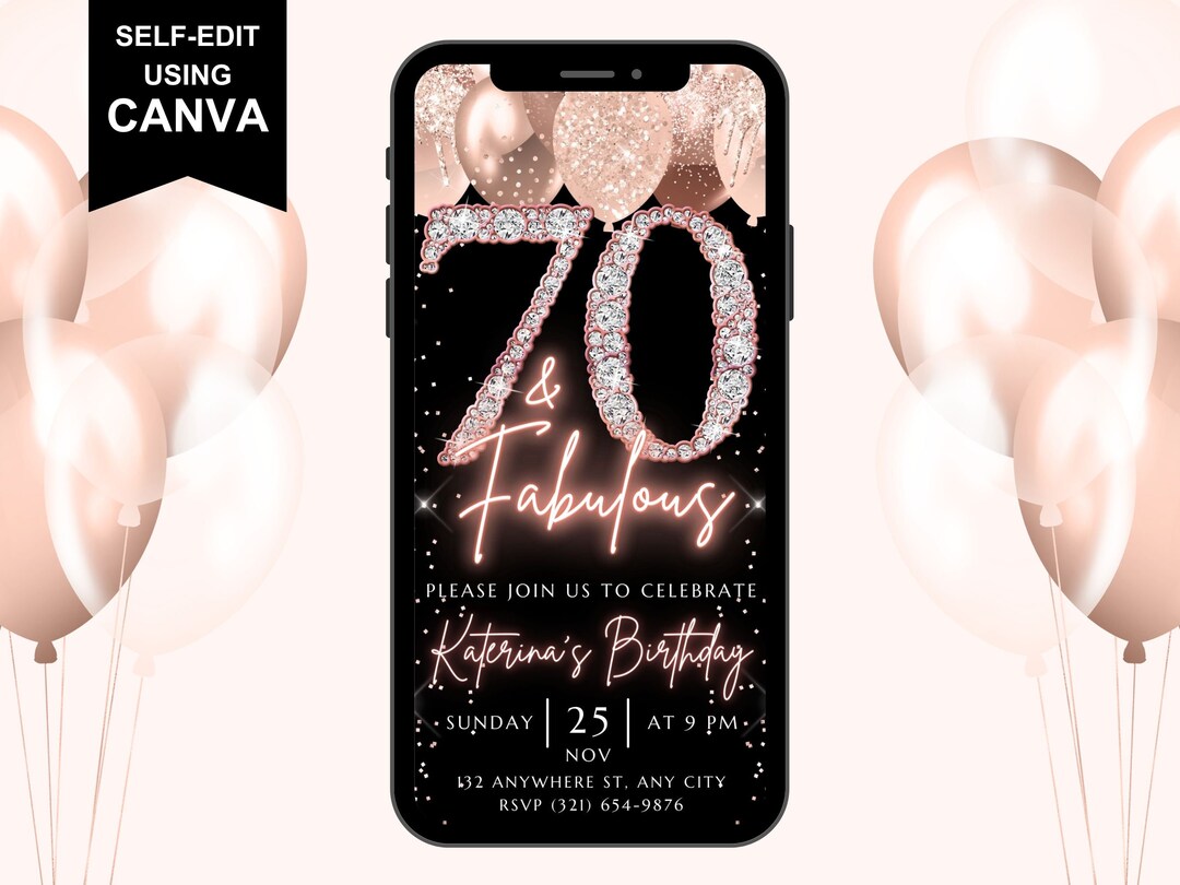 70 and Fabulous Birthday Digital Invitation, 70th Surprise Party Invite ...