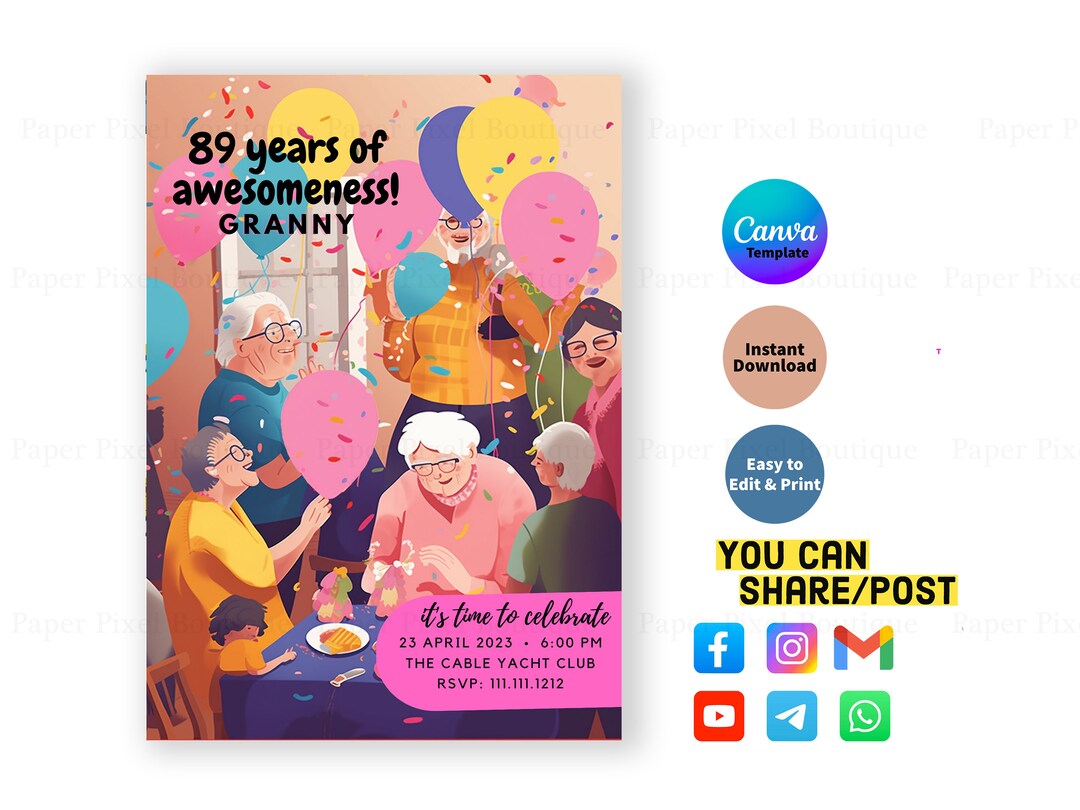 89th Birthday Invite | Celebrate Your Grandma's 89 Years of Awesomeness ...