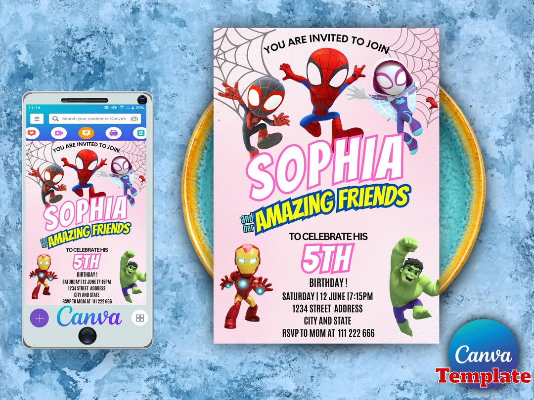 Editable Spidey And His Amazing Friends Birthday Invitation Template ...