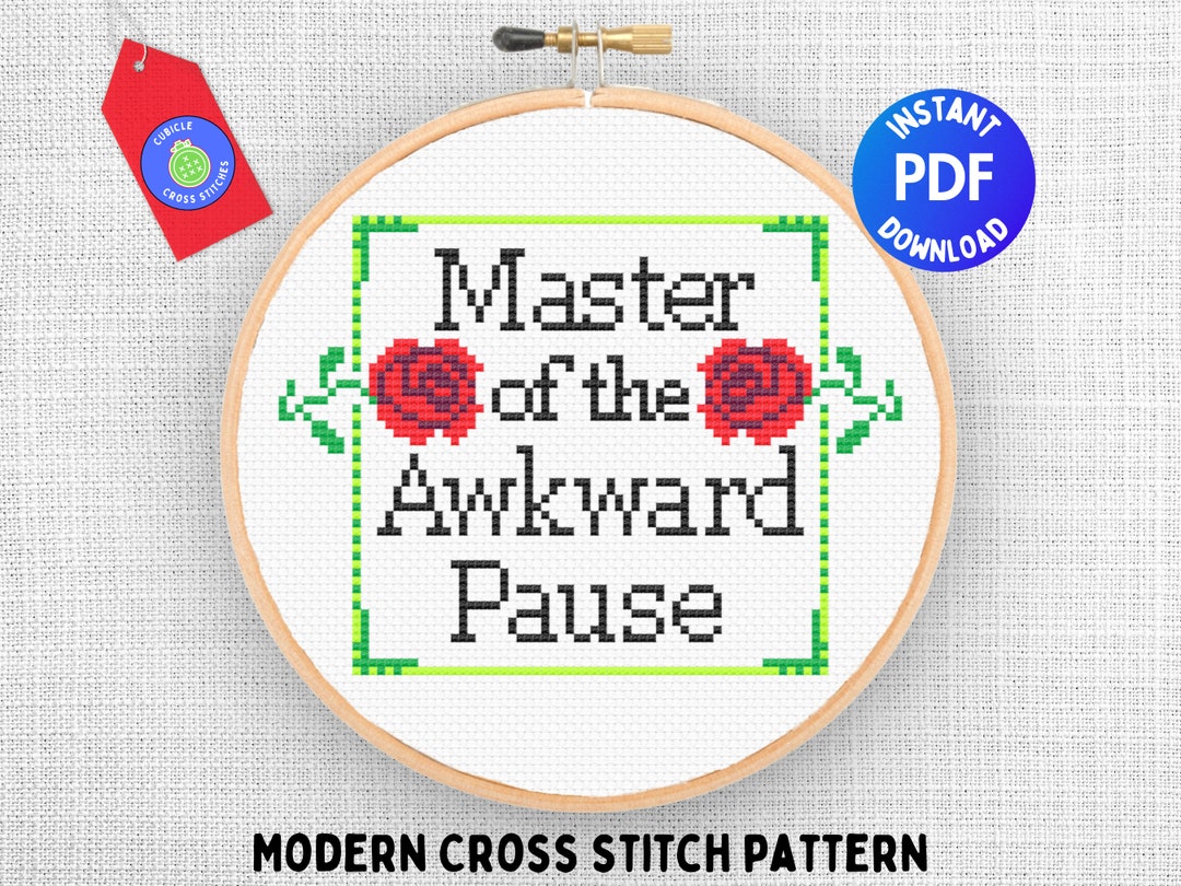 Funny Nerdy Cross Stitch Pattern: Master of the Awkward Pause (easy PDF ...
