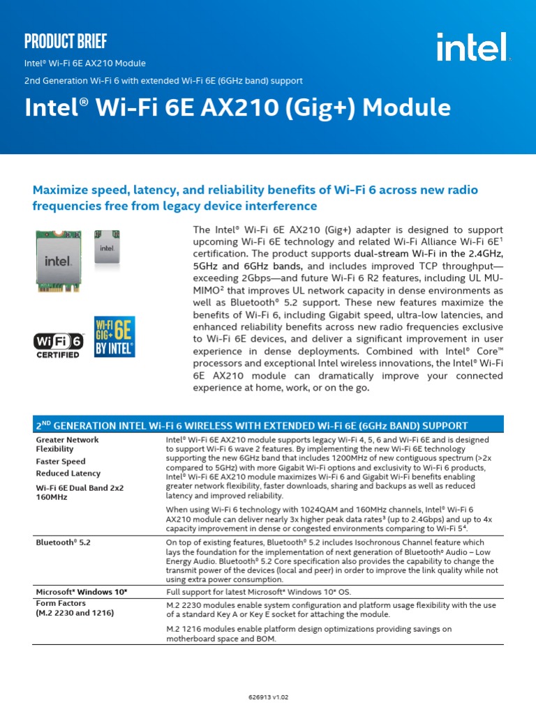 Intel® Wi-Fi 6E AX210 (Gig+) Module: Product Brief | PDF | Wi Fi | Ieee ...