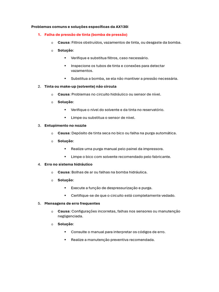 Problemas Comuns e Soluções Específicas Da AX130i | PDF