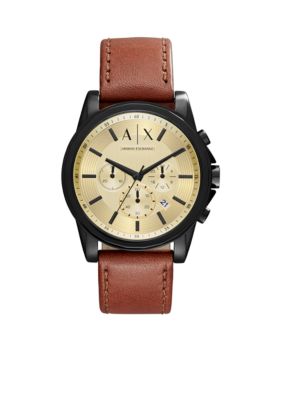 Armani Exchange AX Men's Stainless Steel Chronograph Dark Brown Leather ...