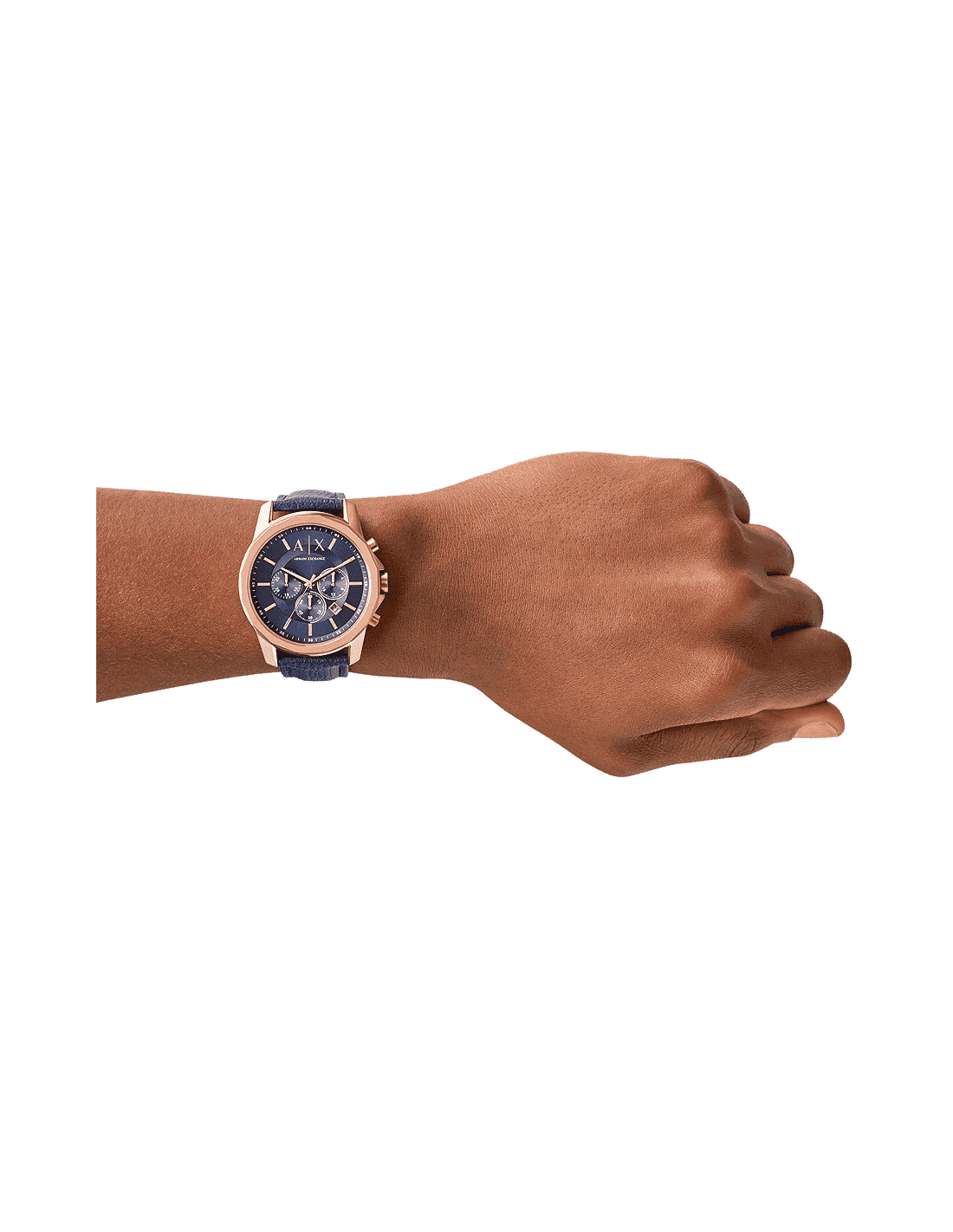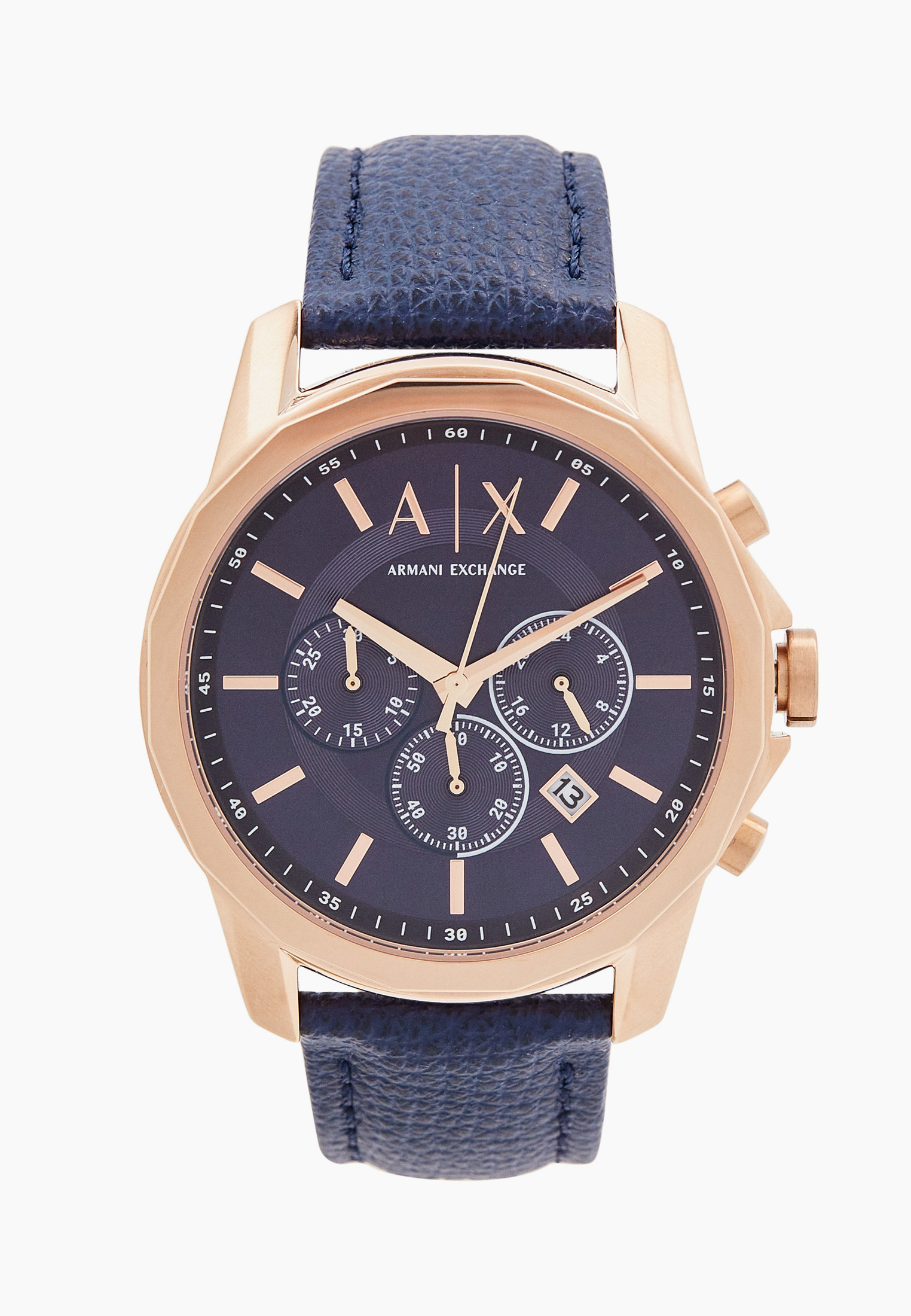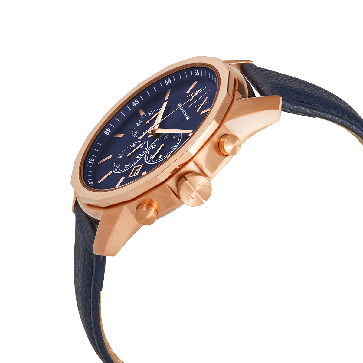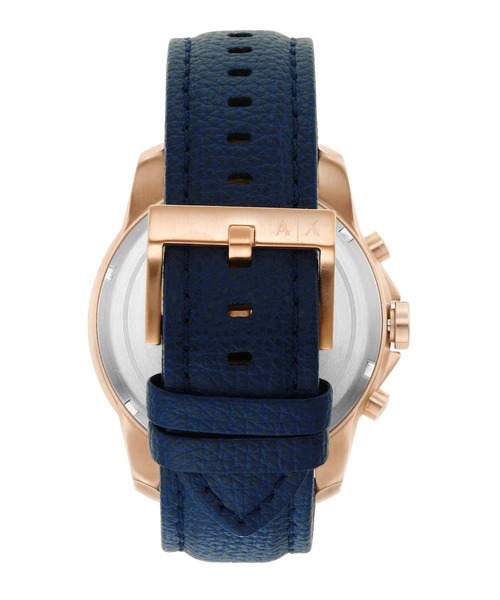 Armani Exchange | A|X系列 玫瑰金x藍色 真皮錶帶三眼計時 AX1723 | 蝦皮購物