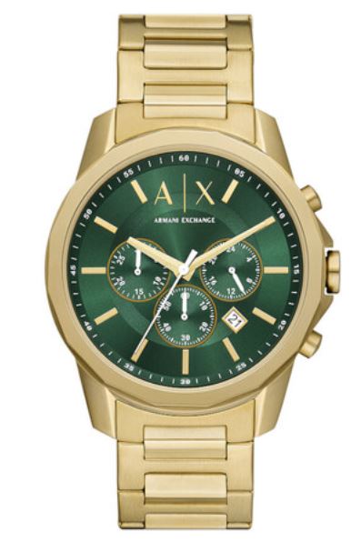 Armani Exchange AX1746 44mm Green Chronograph Dial Gold Tone Stainless ...