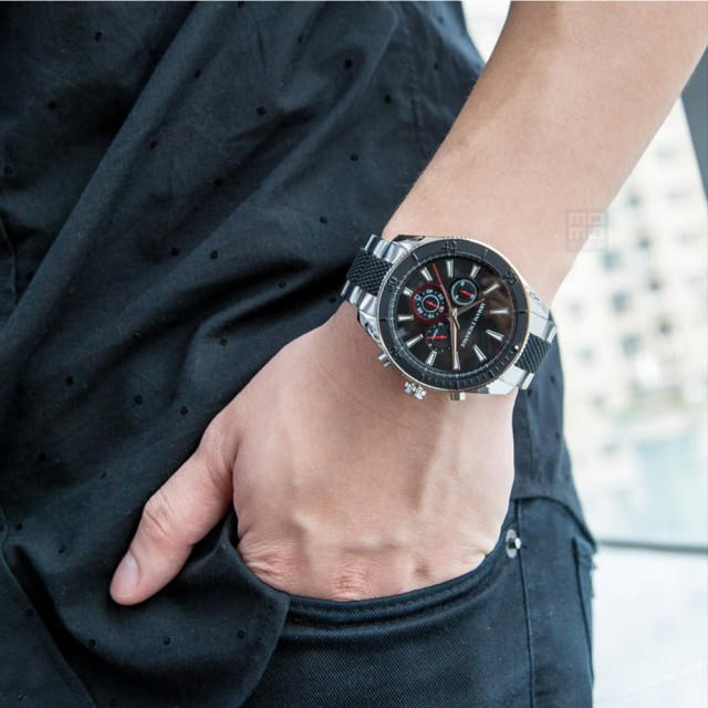 Armani Exchange 英氣時尚運動風三眼計時不鏽鋼腕錶/銀x黑(AX1813) - PChome 24h購物