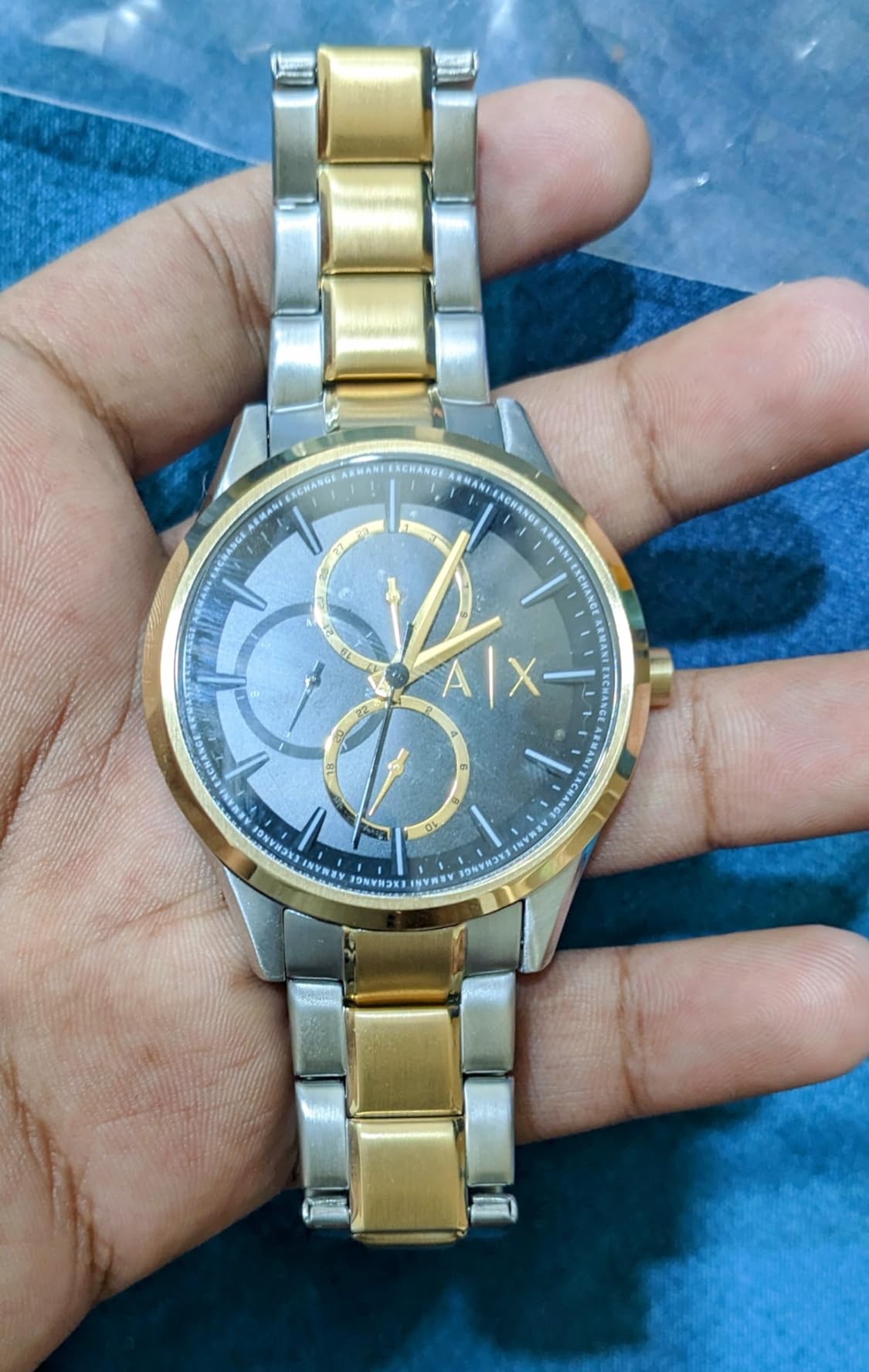 Armani Exchange AX1874 42mm Blue Dial Two Tone Stainless Steel Bracele ...