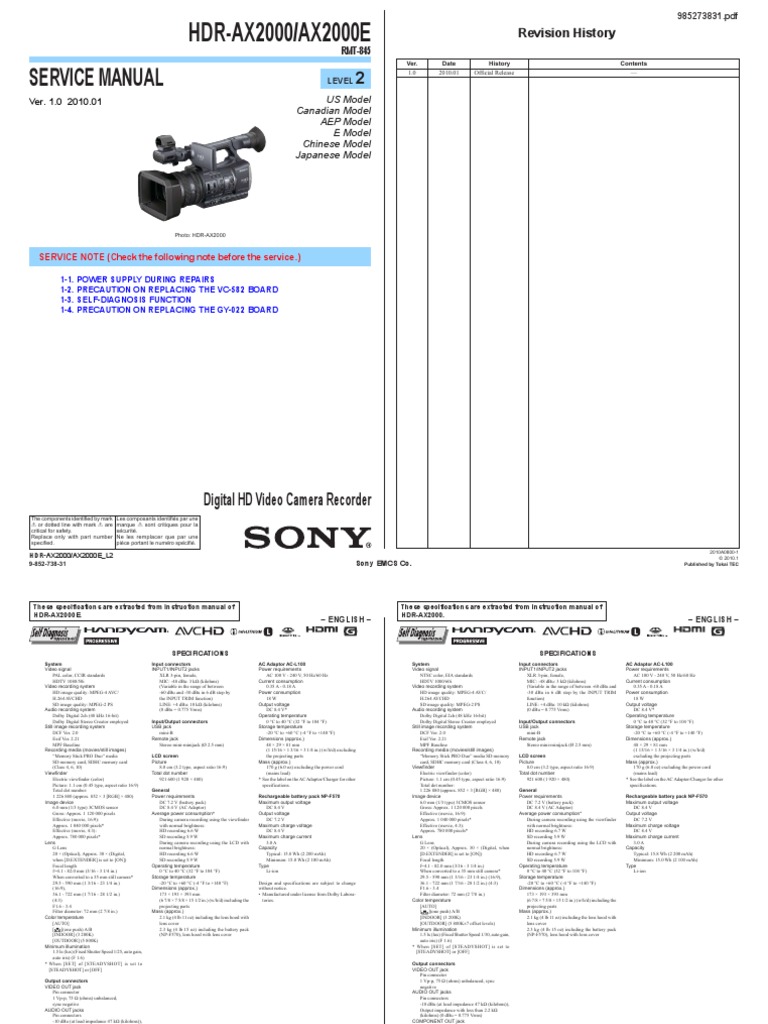 Sony Hdr-Ax2000 Level-2 Ver-1.0 SM | PDF | Digital Camera | Pixel