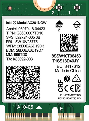 Intel AX201 Wireless Network Adapter, Model: AX201NGW, 802.11ax 2.4Gbps ...