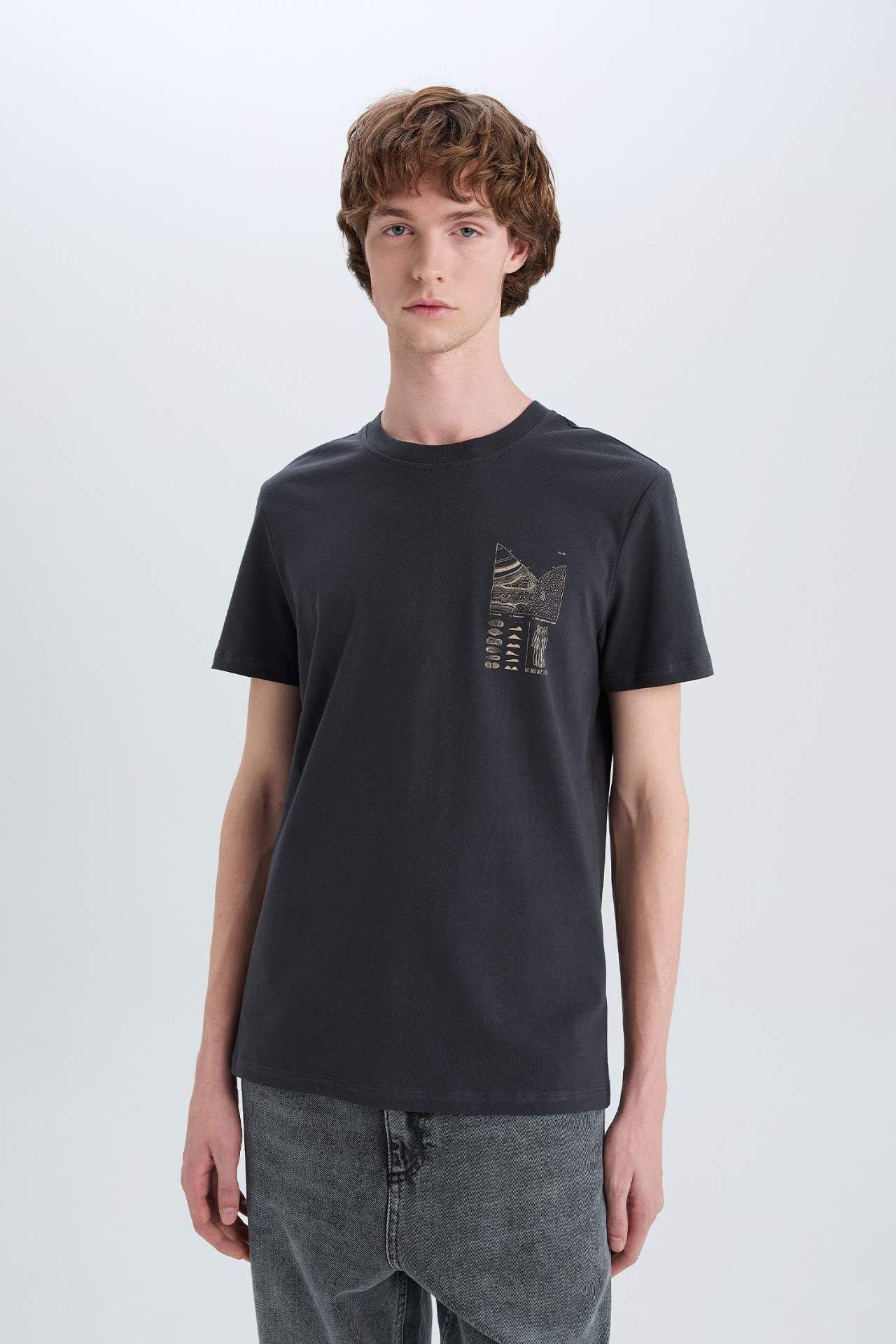 Anthracite Man Slim Fit Crew Neck Printed Short Sleeve T-Shirt 3095925 ...