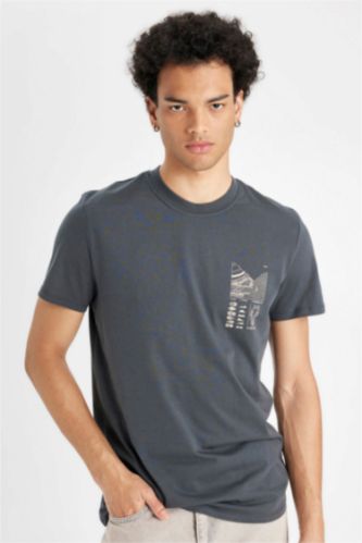 DeFacto Slim Fit Dar Kesim Bisiklet Yaka Baskılı Kısa Kollu Tişört ...