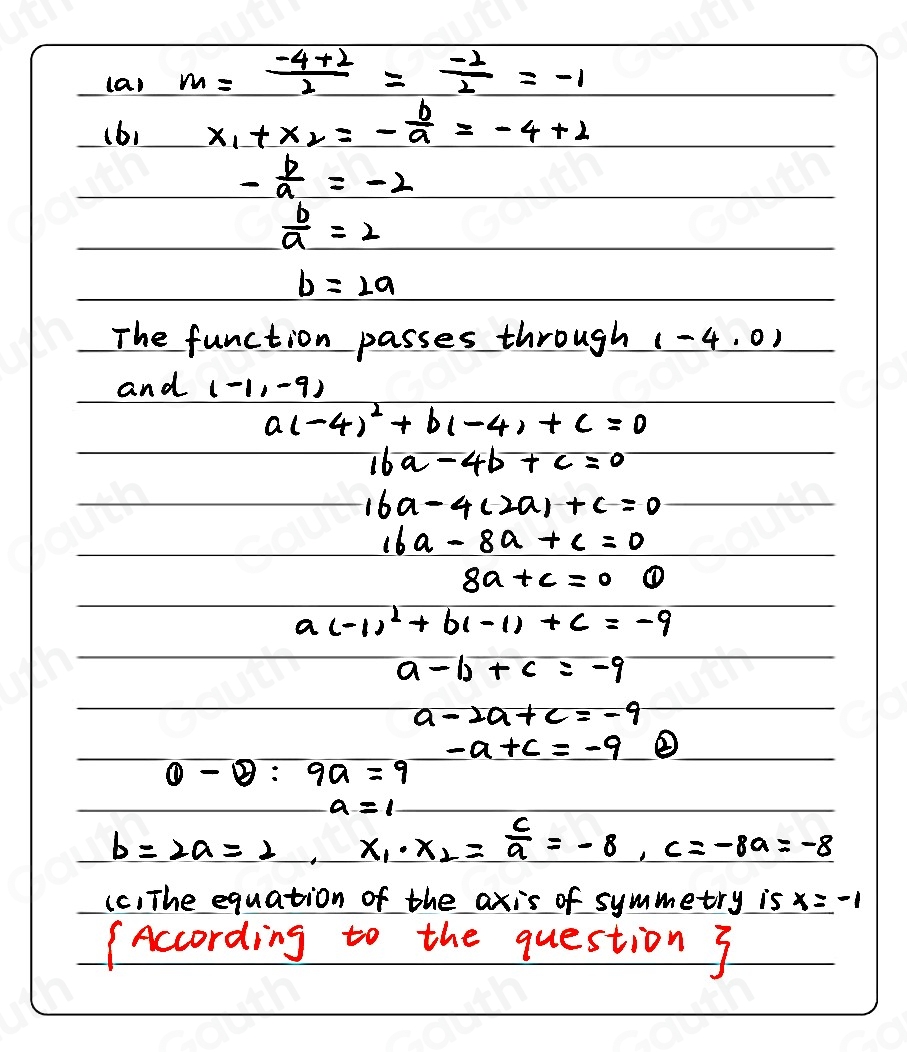 Solved: Consider the quadratic function f(x)=ax^2+bx+c. The graph of y ...