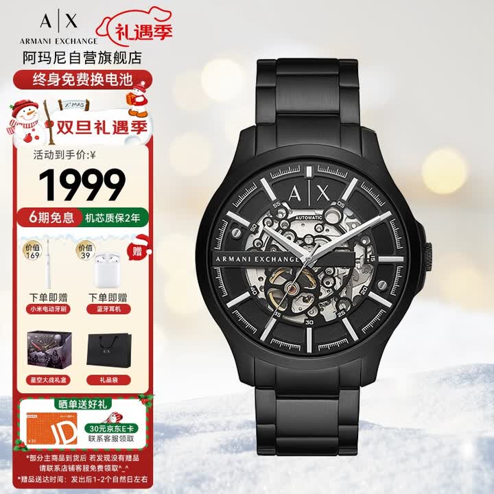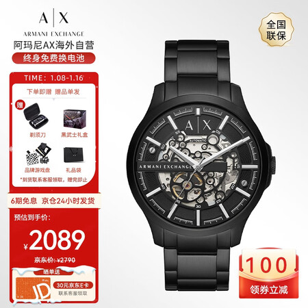 【阿玛尼AX2418】阿玛尼(ARMANI EXCHANGE)手表男士 机械表全自动镂空钢带欧美腕表圣诞礼物送男生AX2418【行情 报价 ...