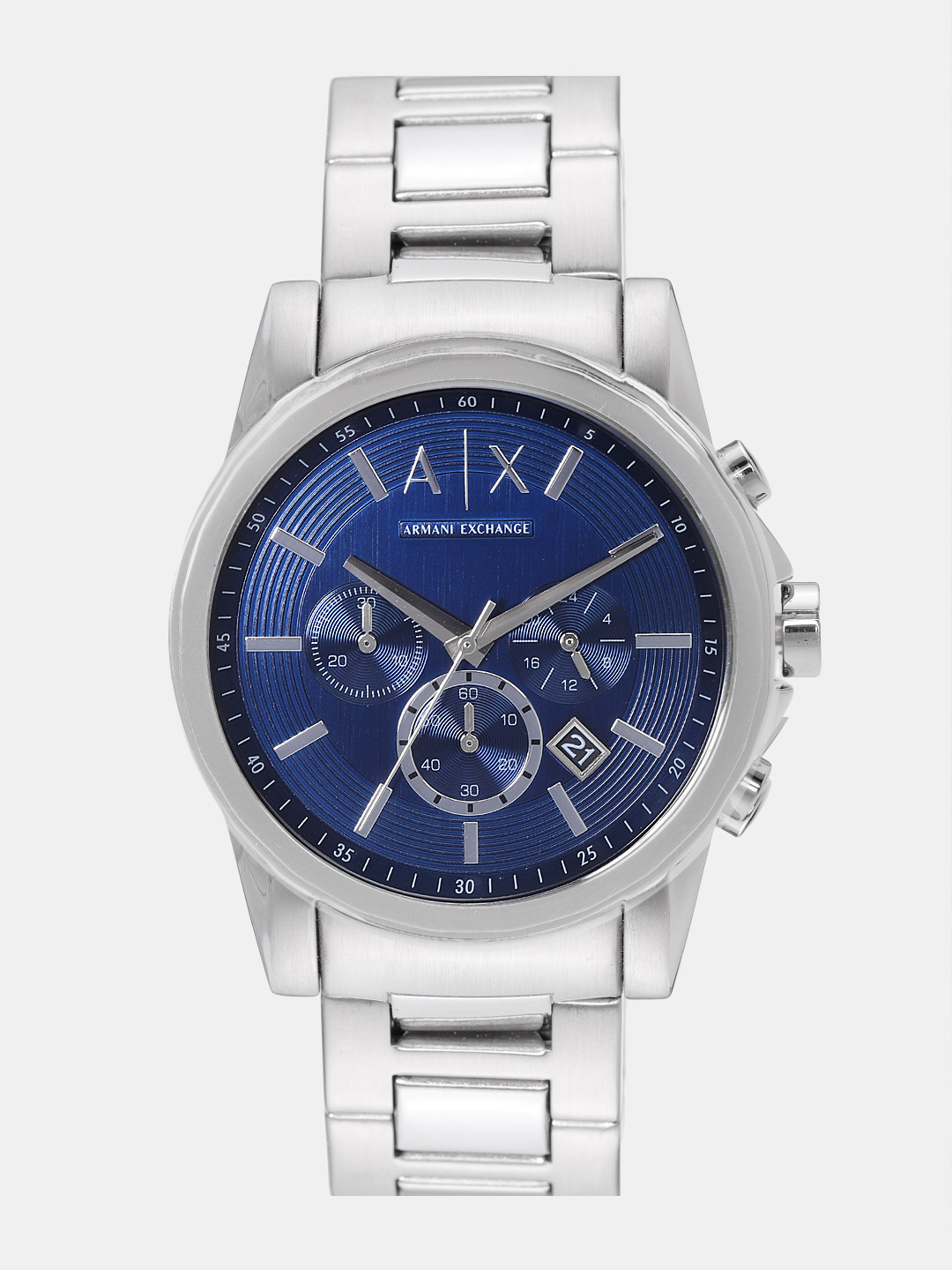 ARMANI EXCHANGE MEN'S SILVER TONE STAINLESS BLUE DIAL CHRONOGRAPH WATCH ...