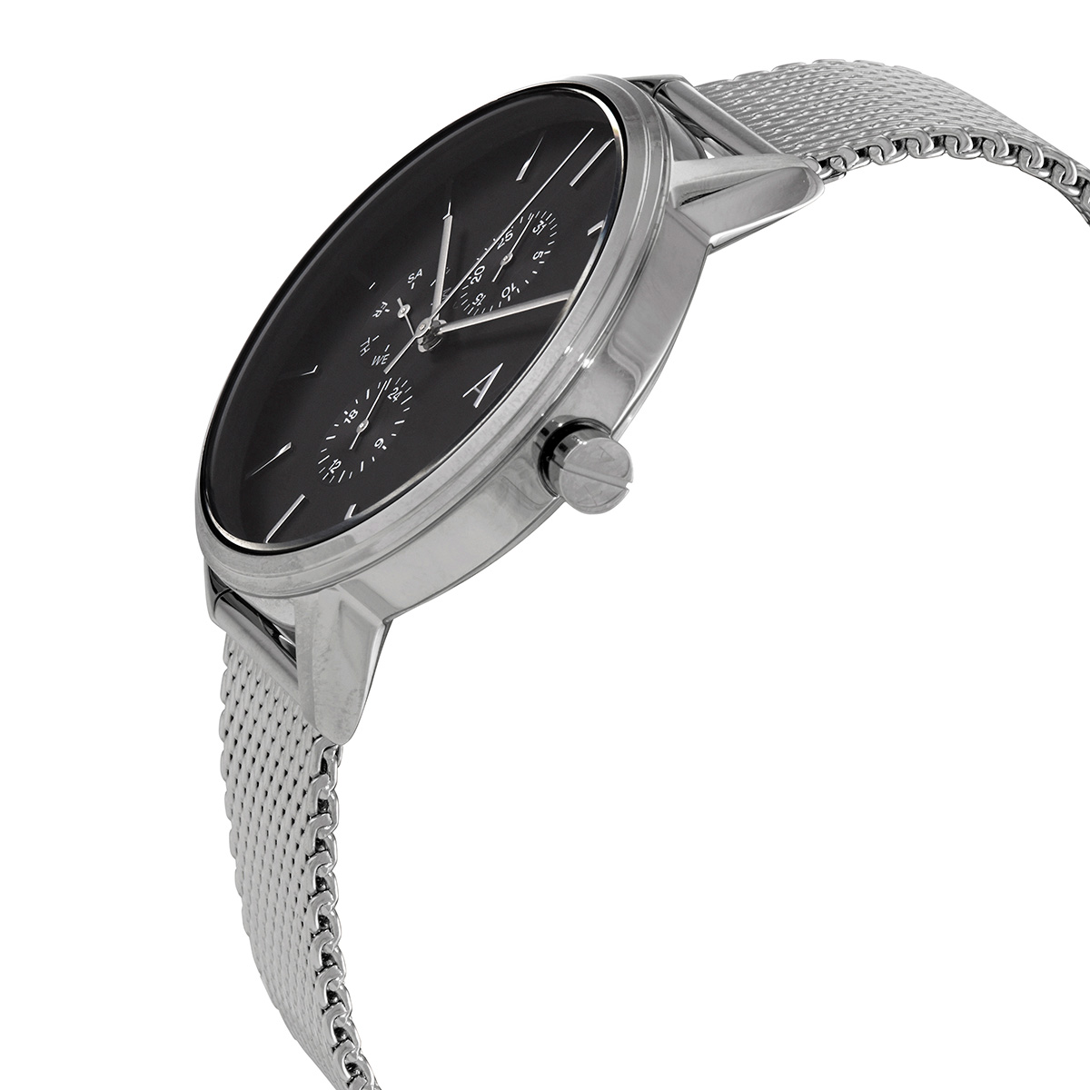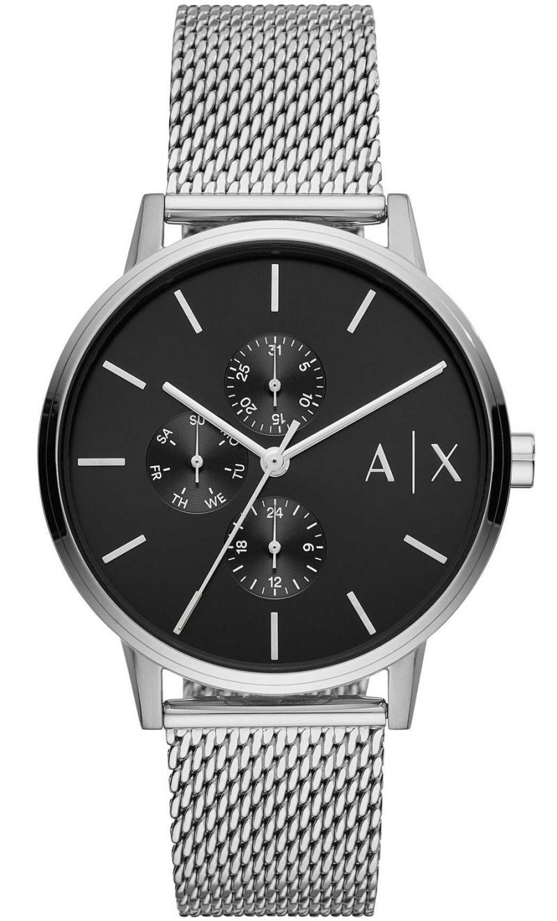 Buy Armani Exchange Cayde Silver Mesh Bracelet Black Dial Quartz Watch ...