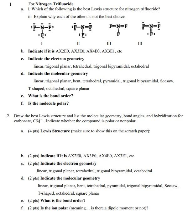 Solved 1. F: For Nitrogen Trifluoride a. i. Which of the | Chegg.com