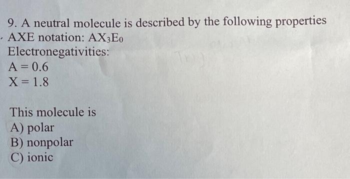 Solved a nuetral moecule is described by the following | Chegg.com
