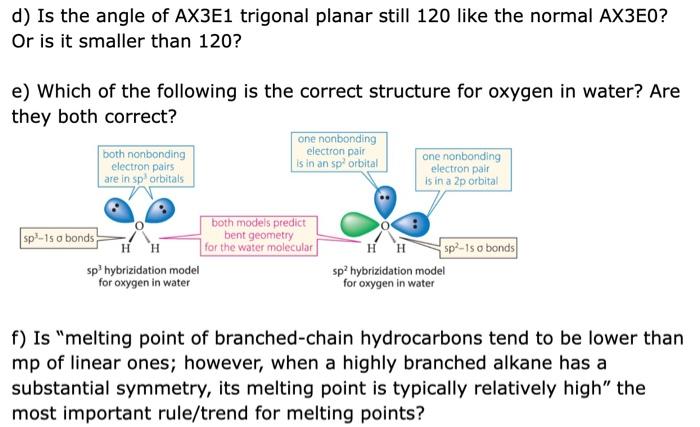 Solved d) Is the angle of AX3E1 trigonal planar still 120 | Chegg.com