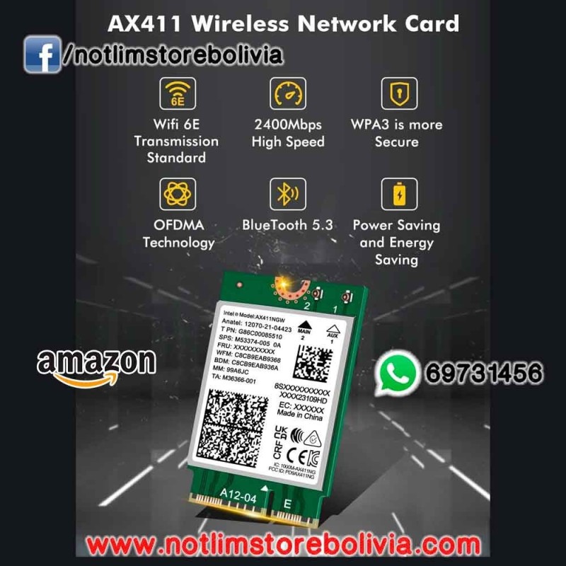 Tarjeta Inalámbrica WiFi 6E Intel AX411 NGW M.2 | notliM Store Bolivia