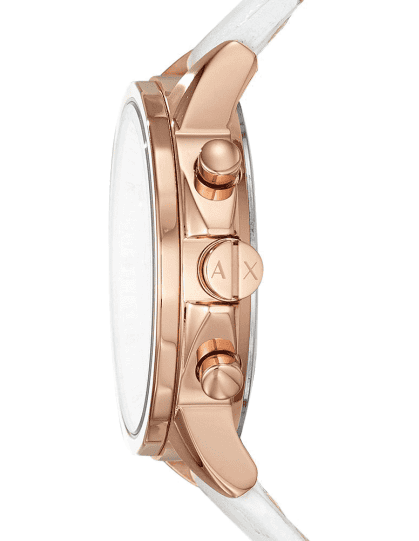 Armani Exchange AX4364 Rose Gold Plated White Leather Strap Watch ...