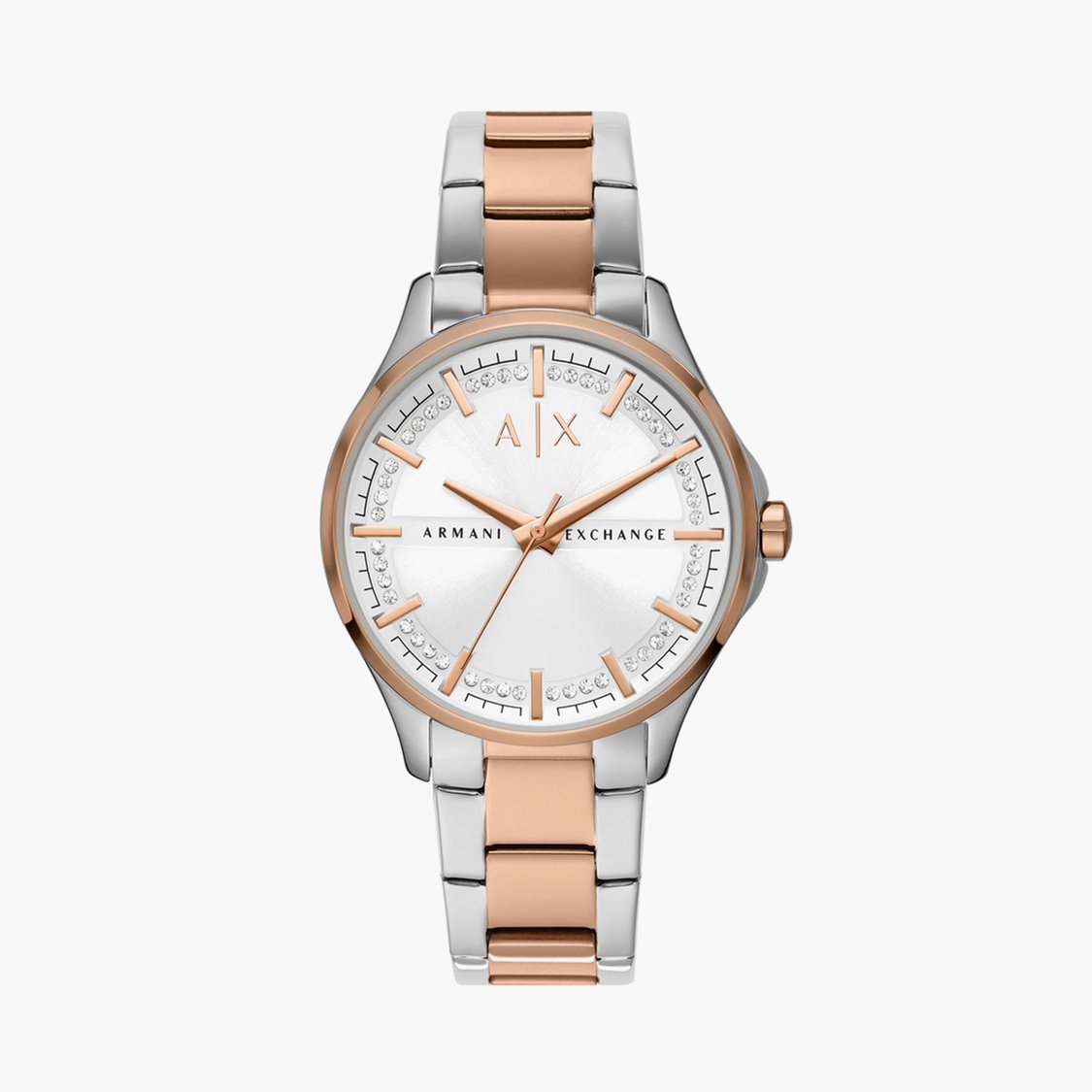 Armani Exchange AX5258 White Crystal Set Dial Two Tone Stainless Steel ...