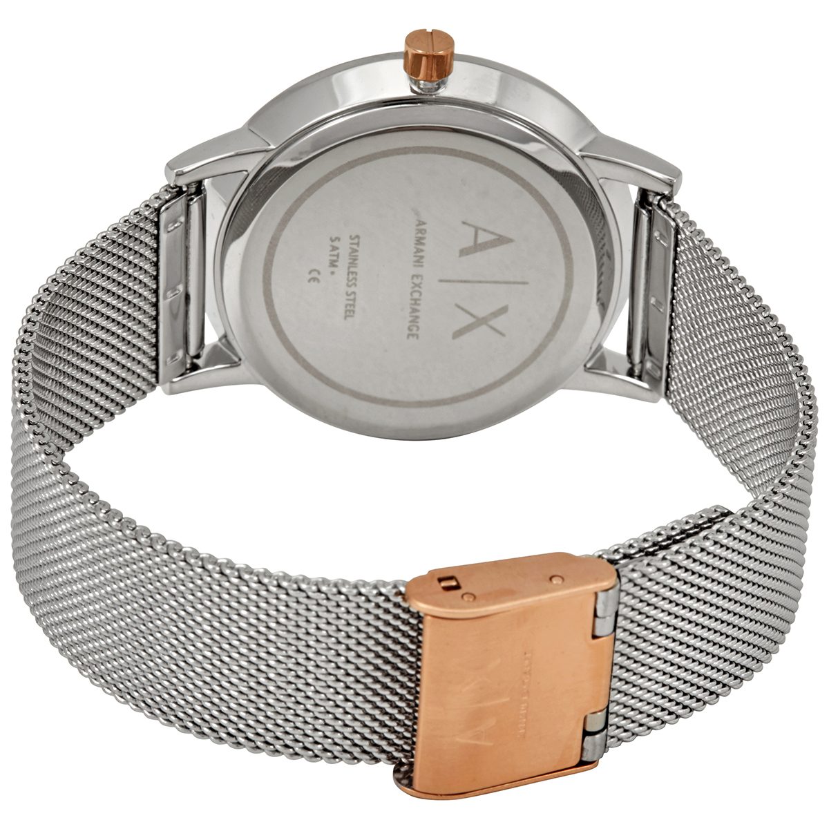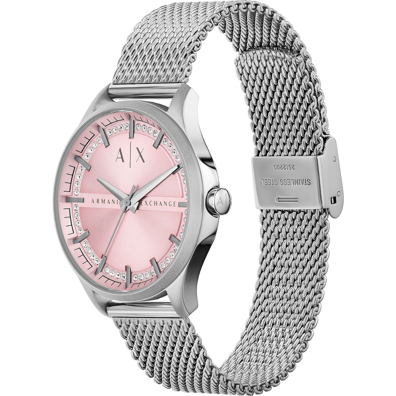 Armani Exchange AX5273 Ladies Pink Dial Stainless Steel Mesh Strap ...