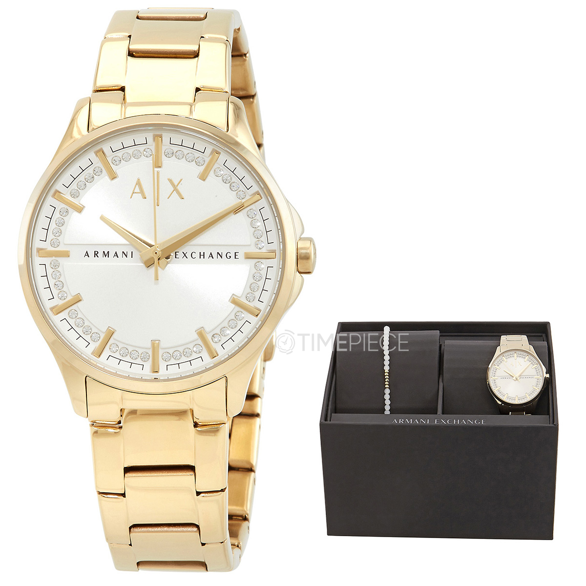 Armani Exchange Lady Hampton Quartz Gold Dial Ladies Watch And Bracelet ...