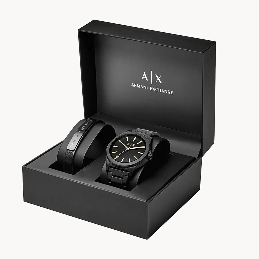 Armani Exchange Men's Watch And Bracelet Gift Set | Black Dial | Black ...
