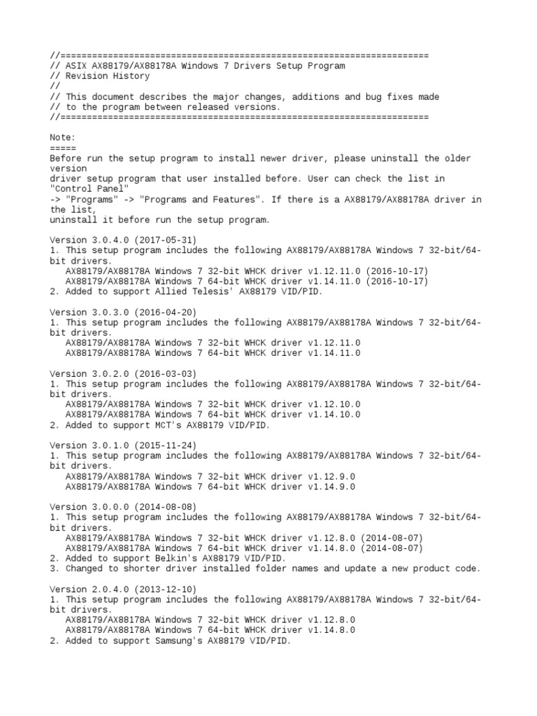 AX88179 - AX88178A Windows 7 Drivers v1.x.11.0 | PDF | 64 Bit Computing ...