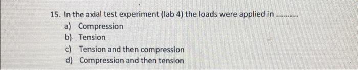 15. In the axial test experiment (lab 4) the loads | Chegg.com