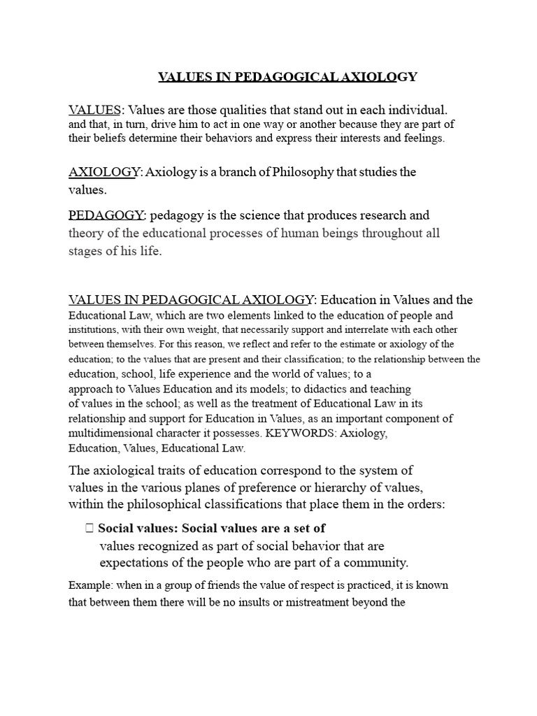 Values in Pedagogical Axiology | PDF | Value (Ethics) | Pedagogy