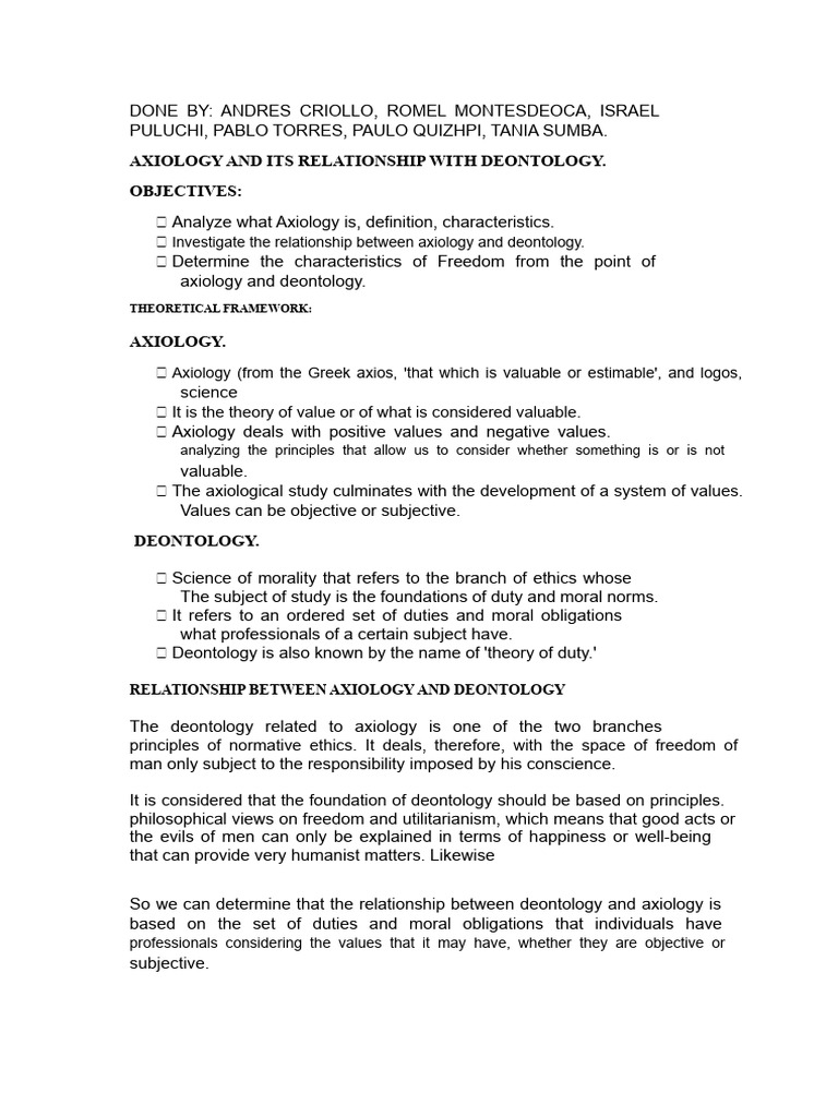 Axiology and Deontology: Exploring Values | PDF | Value (Ethics ...