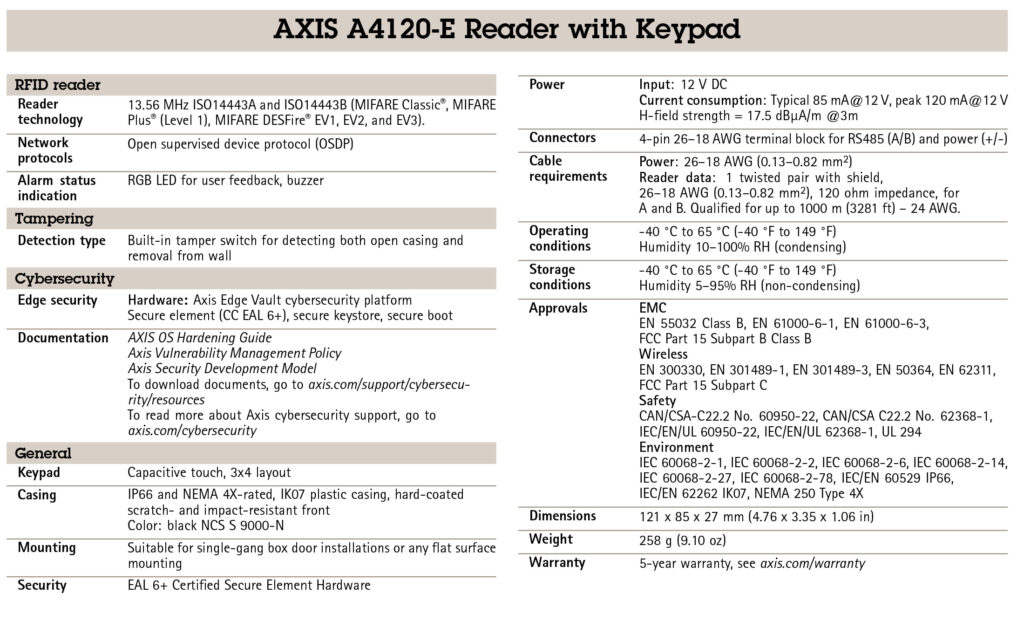 Technology - AXIS A4120-E Reader with Keypad Нэвтрэх системийн ...