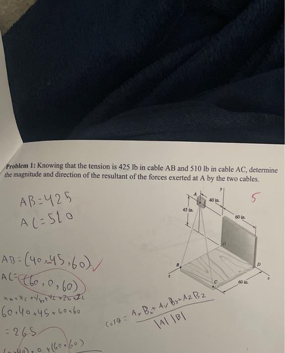 Solved Problem 1: Knowing that the tension is 425lb in cable | Chegg.com