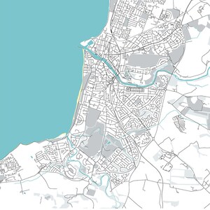 Modern Town Map of Ayr, Scotland: Town Centre, Ayr Beach, River Ayr ...