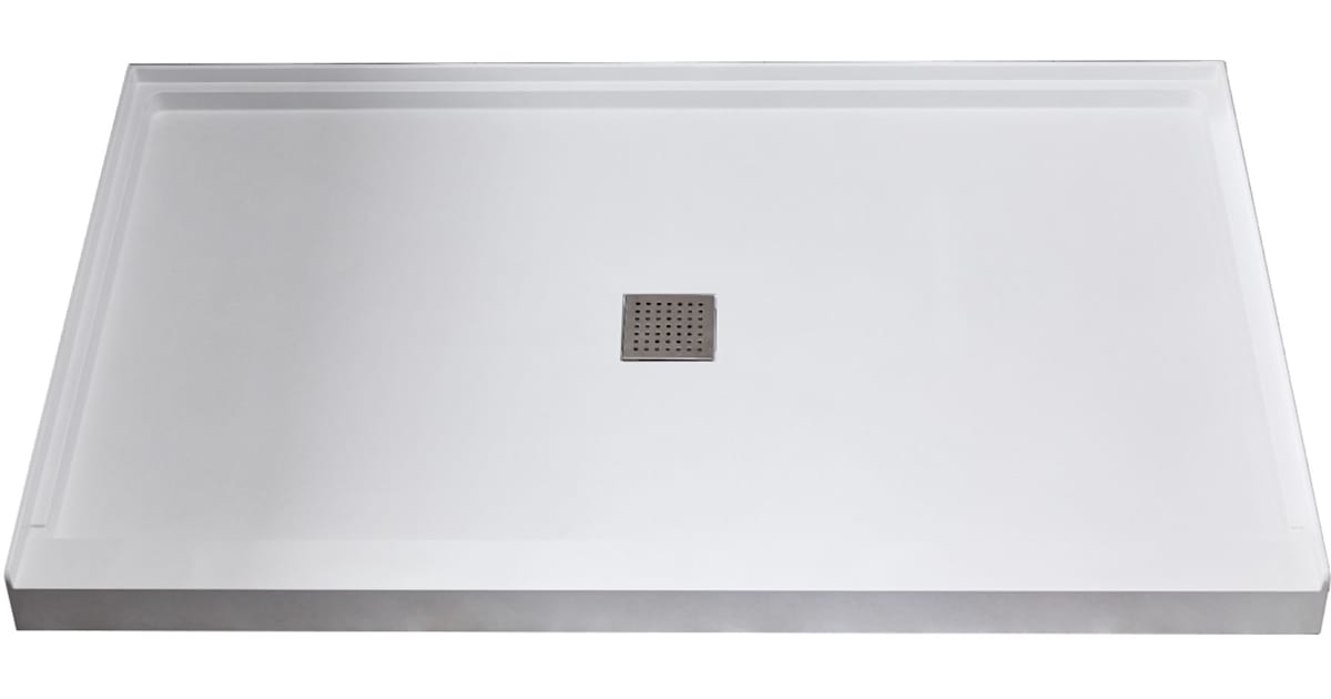 ANZZI Alexander 60 in. L x 32 in. W Alcove Shower Pan Base with Center ...
