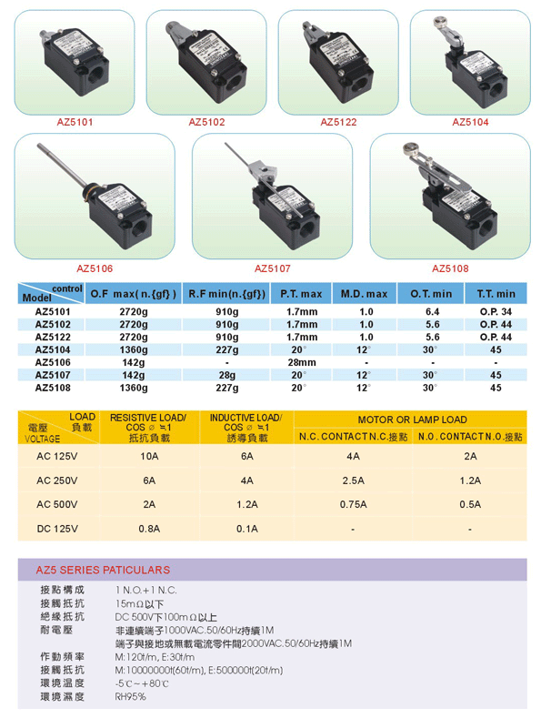 AZ-5 系列限制開關 - Auspicious Electrical Engineering Co., Ltd.