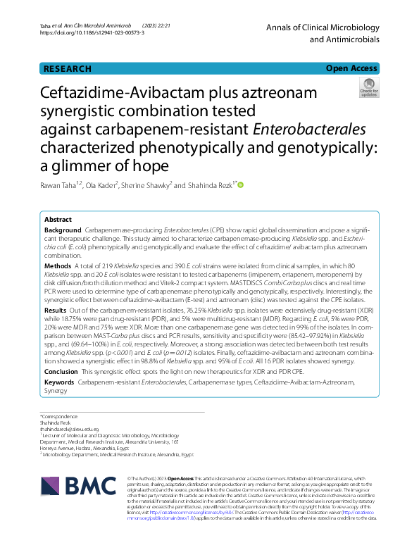 (PDF) Evaluation of Aztreonam and Ceftazidime/Avibactam Synergism ...