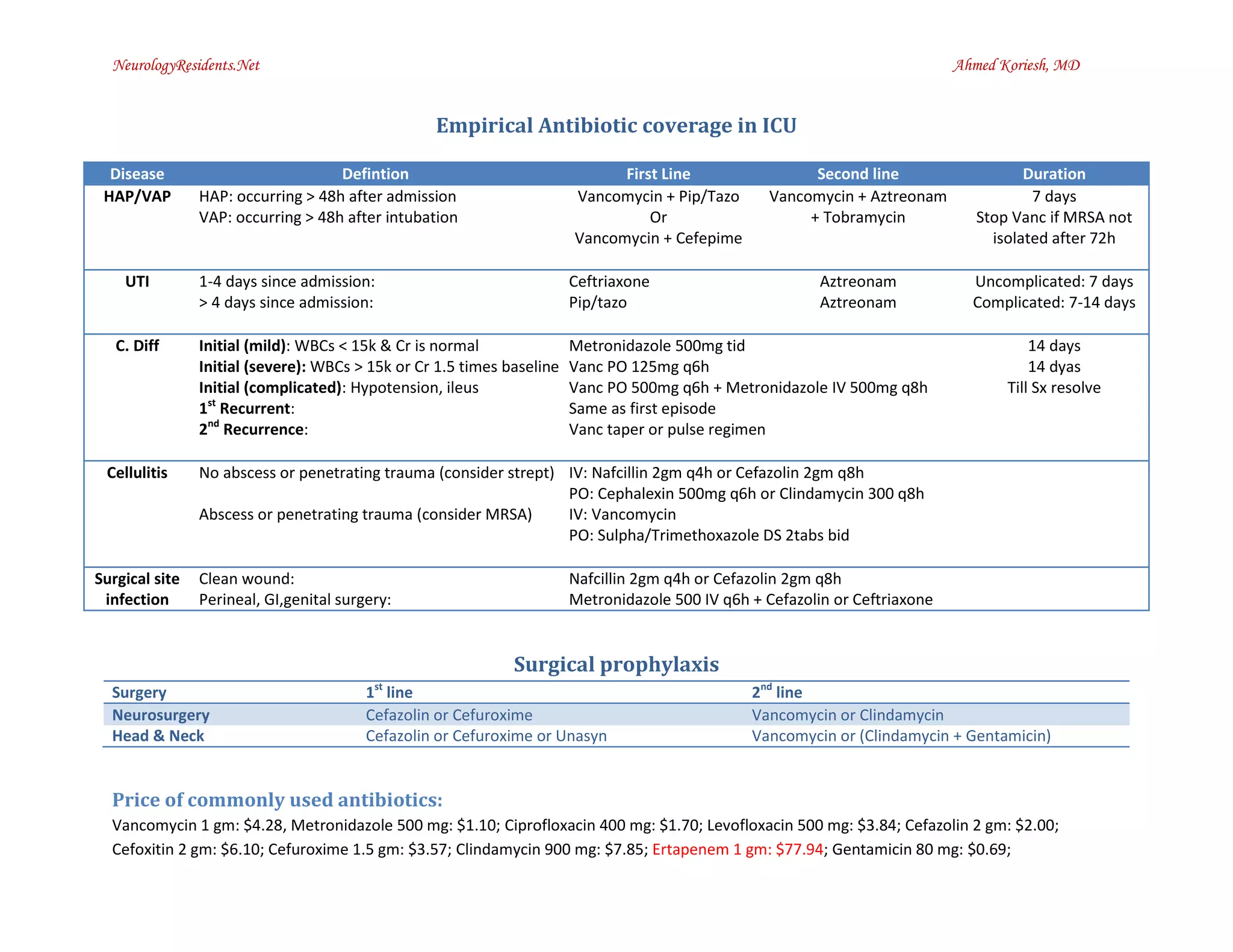 Emperical antibiotics in ICU | PDF