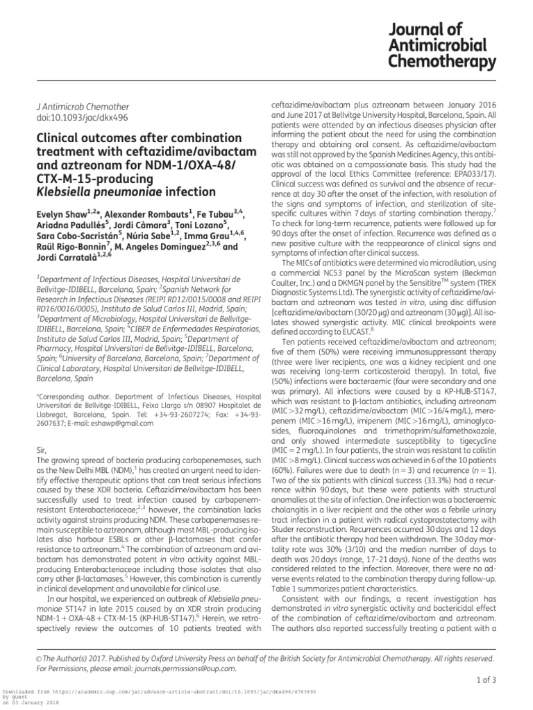 (PDF) Synergistic combination of aztreonam and ceftazidime/avibactam ...
