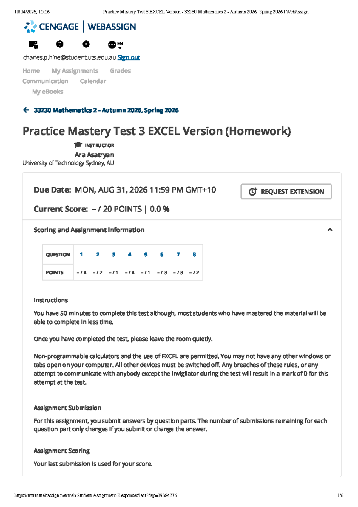 Practice Mastery Test 3: EXCEL Version for 33230 Mathematics 2 - Studocu