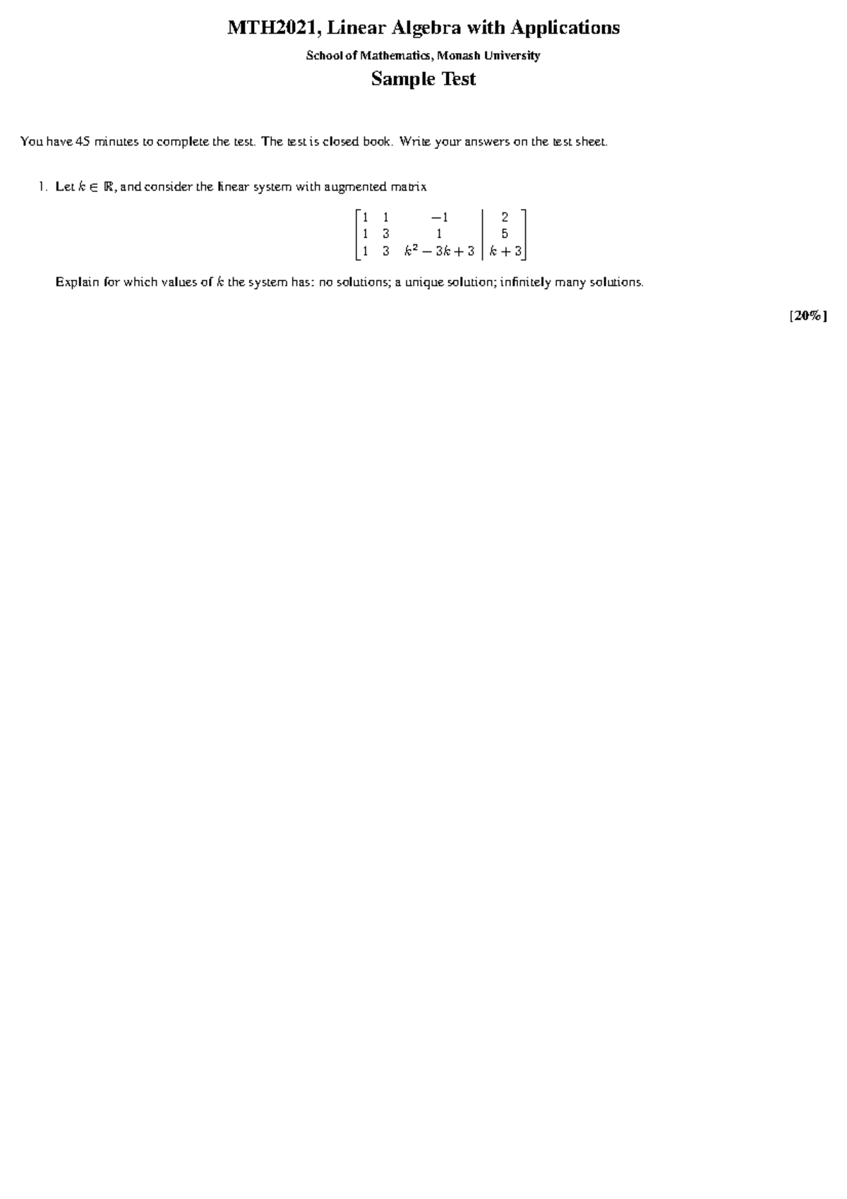 MTH2021 Sample Test: Linear Algebra Applications Exam - Studocu