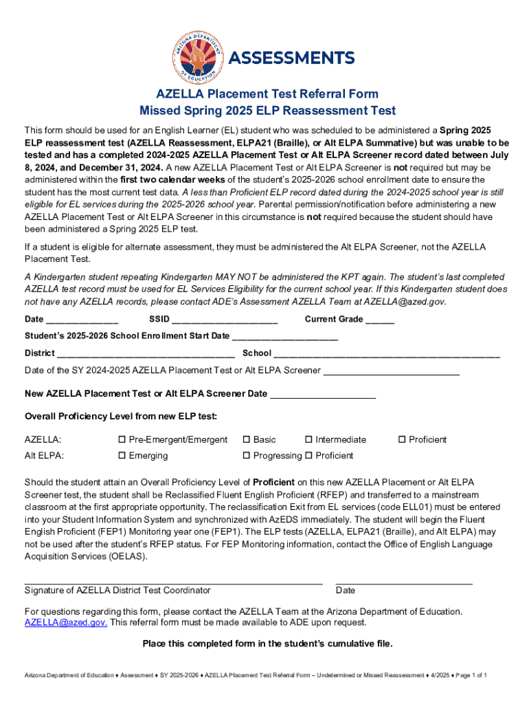 AZELLA Placement Test Teacher Referral Form - Blank Fillable Template ...