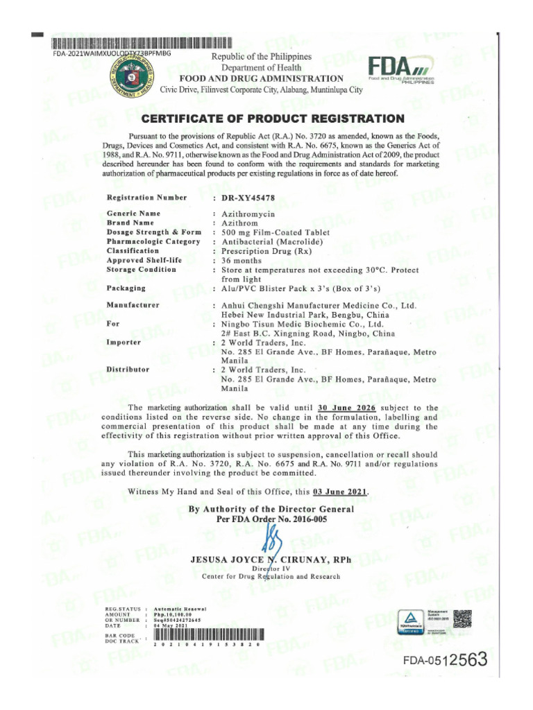 Azithrom 500MG CPR June 2026 | PDF