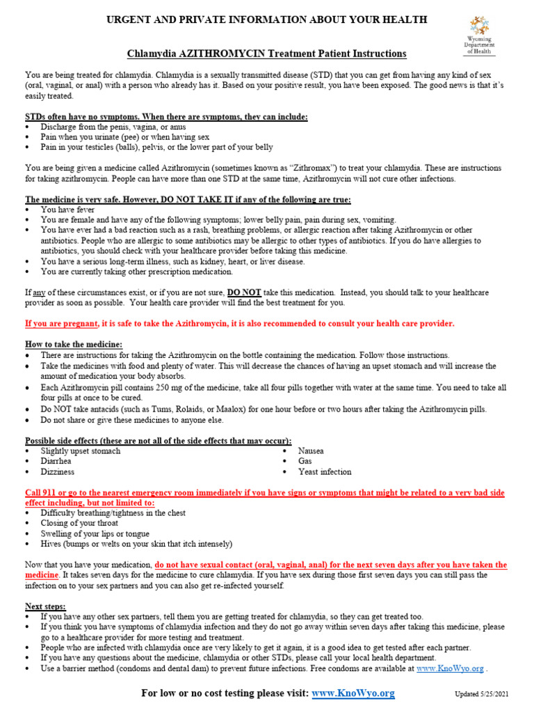 2021 340B Chlamydia AZITH Treatment Patient Instructions | PDF ...