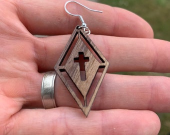 Wooden Cross Earrings - Aztec Alt Style - Black Walnut Two Tone - Etsy