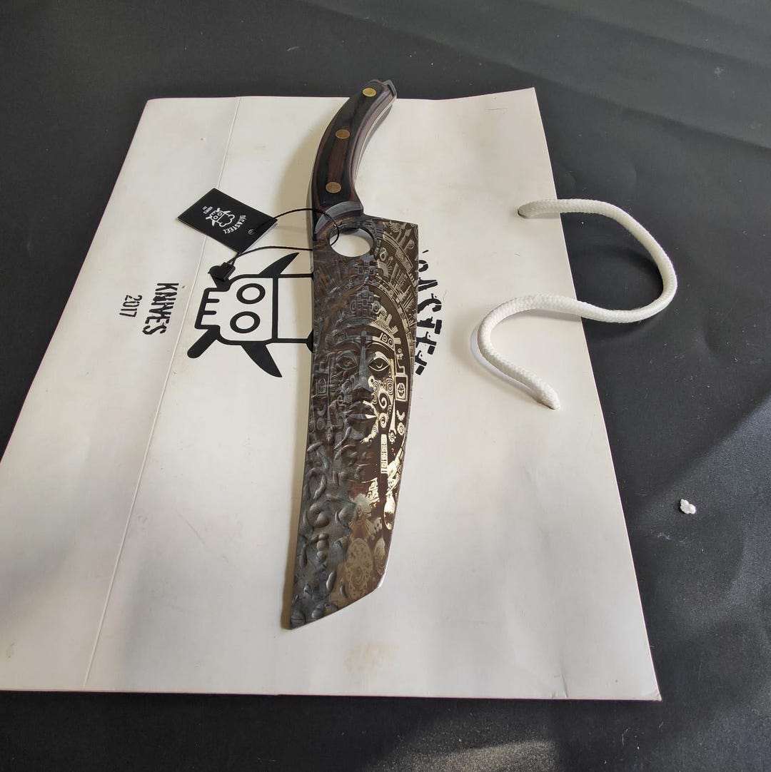 Aztec Fighter Engraved Chopper Knife: Pakka Wood Handle by Di'casteel ...
