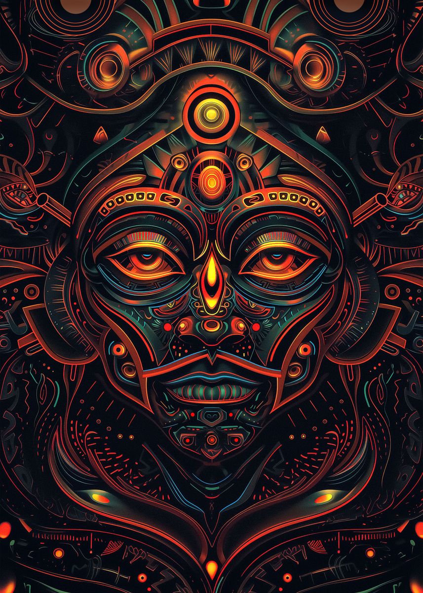 'Aztec God' Poster, picture, metal print, paint by Bruno Macedo | Displate